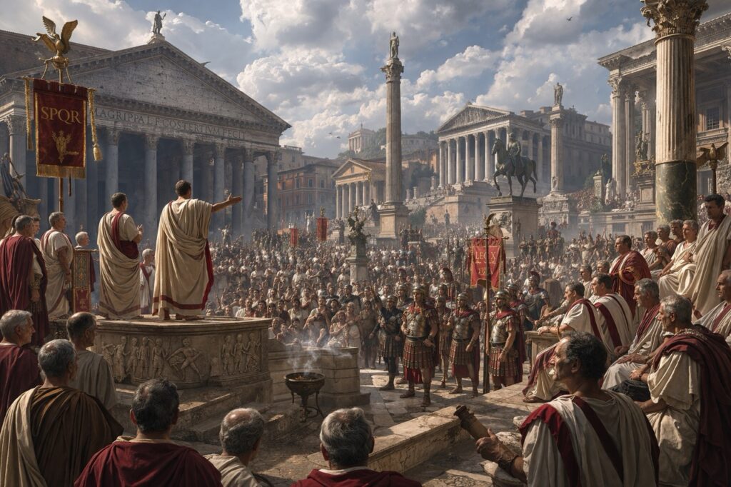 La República tardía termina, pero deja intacta una herencia decisiva: Roma seguirá gobernando el imperio con memoria republicana y poder monárquico.
